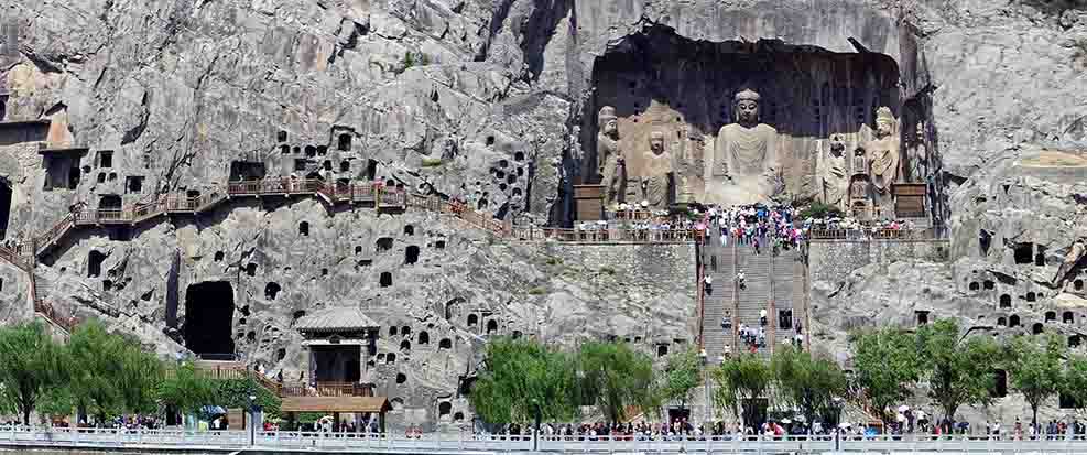 佛教雕刻開始于巖洞寺廟,在那里雕刻的作品大多是浮雕的,這些浮雕包含房屋和建筑,這些浮雕說明了與佛陀教義有關的信念。創造這些寺廟和雕塑不僅獲得了與自己的個人成長相稱的優點,而且為奉獻者提供了崇拜和冥想靈感的參考。大量開鑿的洞穴組成的主要鑿巖場所包括云岡石窟,龍門石窟,麥積山石窟和莫高窟。